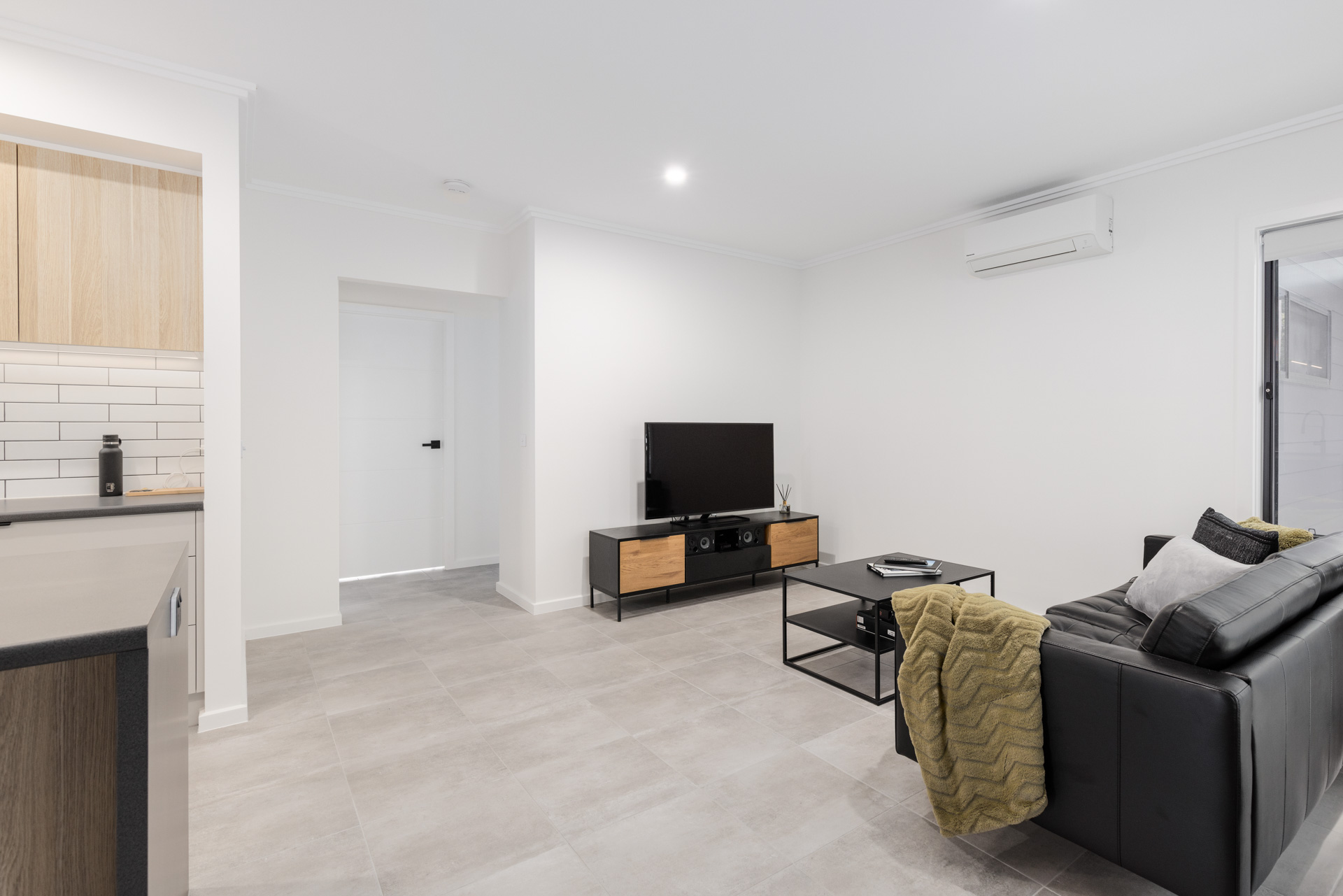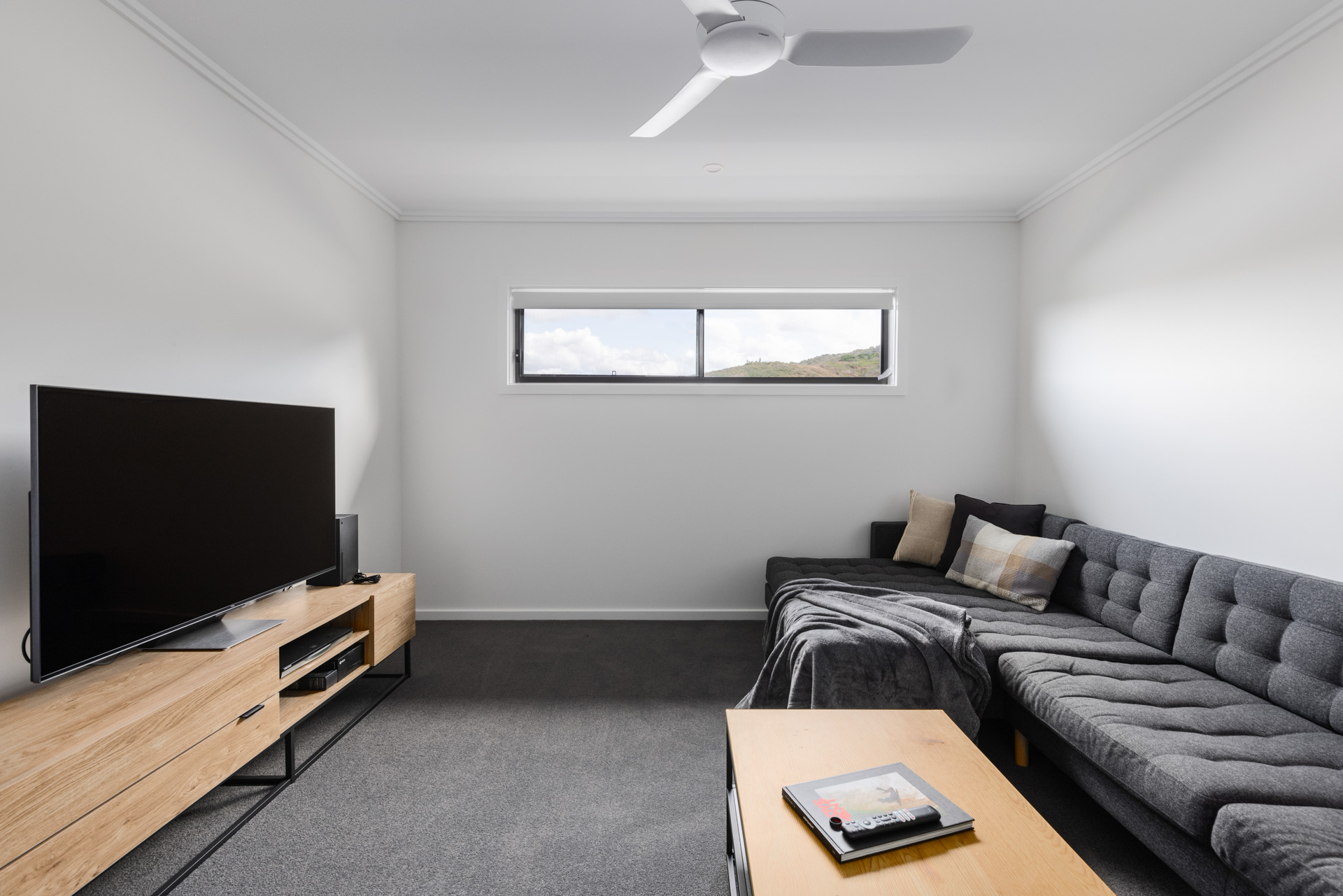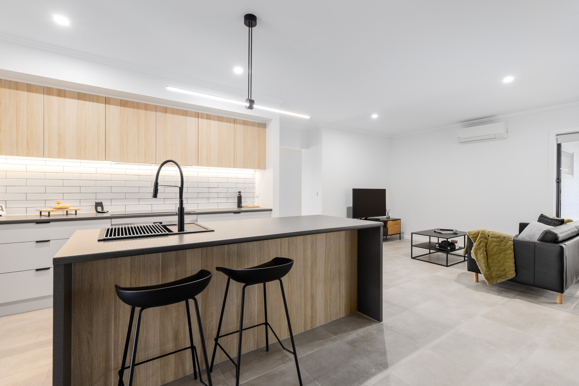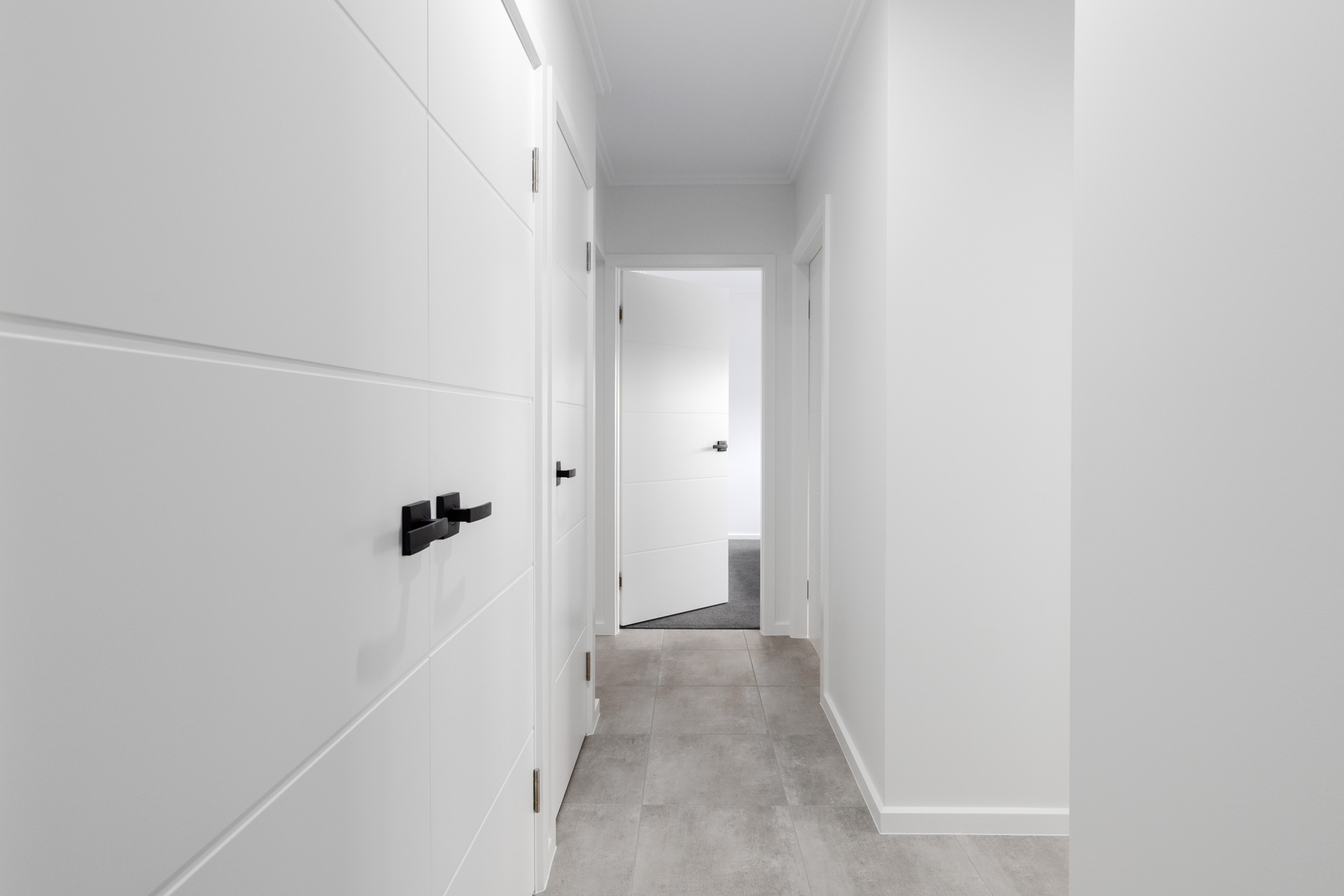 This new home was undertaken with GJ Gardner Homes, and we are so proud at how this house turned out for Michael. Located on the high side of the street this house really stands out for the rest with its 2 styles of cladding and Grano Sahara Texture finish both in Colourbond Monument really makes this house bang from the start. On the interior Michael selected the natural colours of Snowy Mountain ¼ Strength on walls and the same on doors and woodwork with a satin finish giving them a subtle but not overpowering contrast to the walls, allowing his selection of tiles, kitchen benchtop and cupboards really marry in with his paint colour selections. We formed a great relationship with Michael having been back since handover to make slight adjustments, freshen up areas and give his garage floor a real pop with an Epoxy Enamel finish.